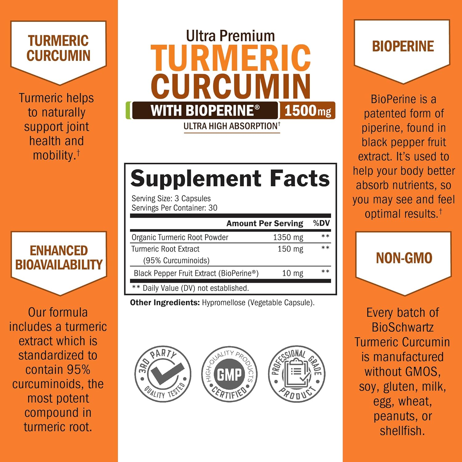 It includes BioPerine® and ginger for superior absorption, plus 95% standardized curcuminoids for maximum potency and effectiveness.